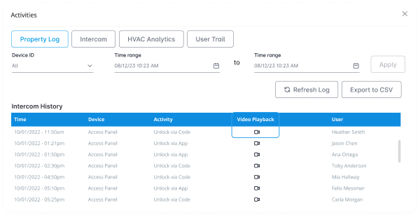 Each device has a complete activity log that connects to our security cameras, so you can easily view the associated footage for each access event.